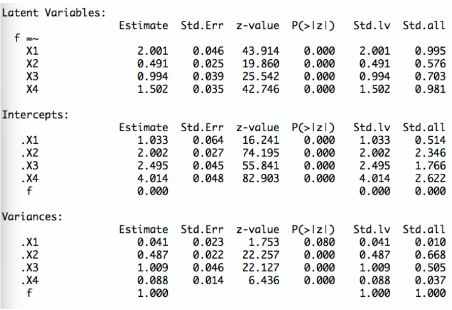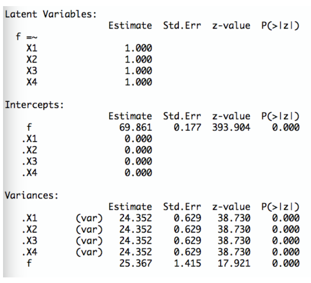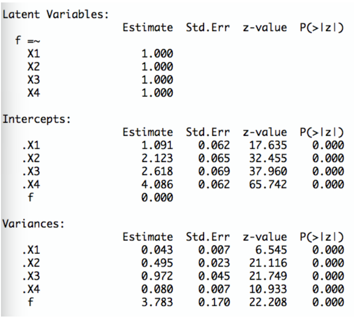 Eine Person hat auf vier essentiell \(\tau\)-äquivalente Items wie folgt geantwortet: