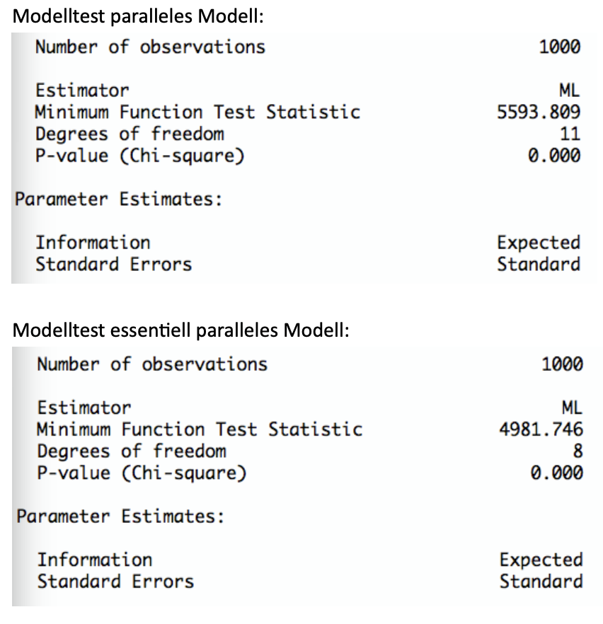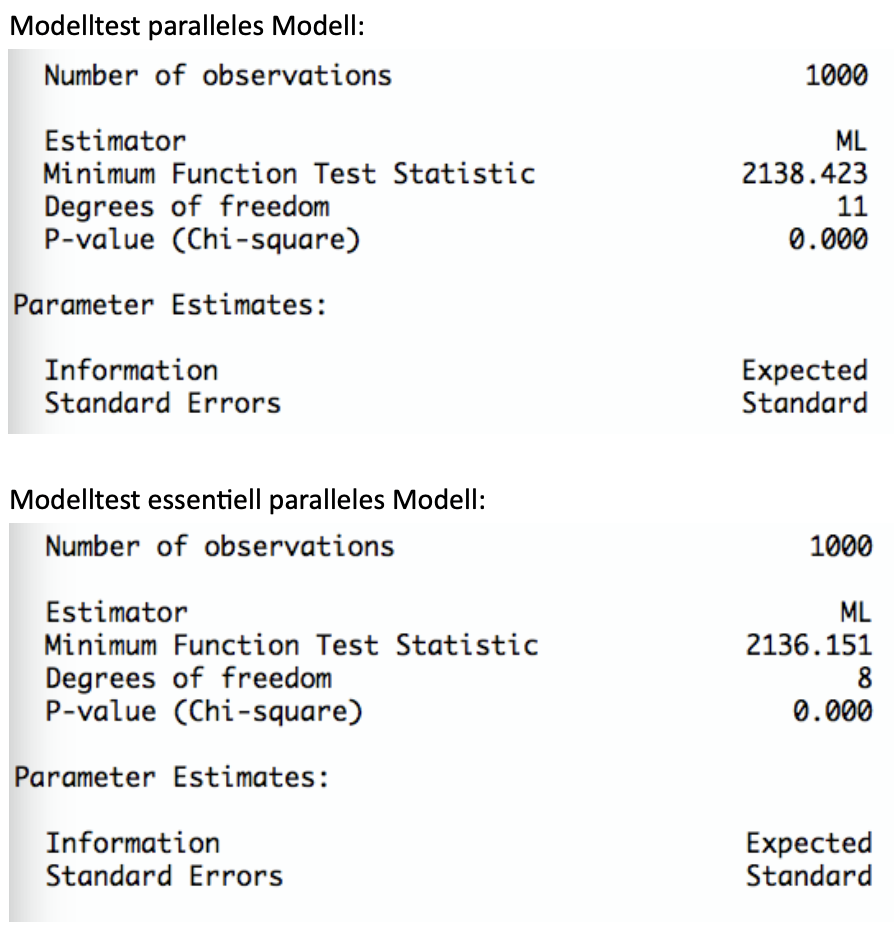 LösungParalleles und essentiell paralleles Modell werden abgelehnt, da hier die p-Werte < 0.05 sind.