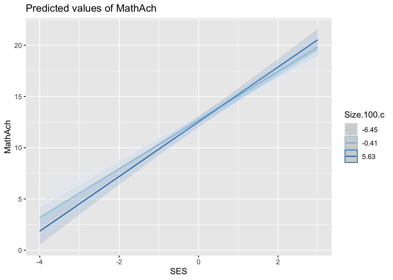 Formula: MathAch ~ SES * Size.100.c + (1 + SES | School)