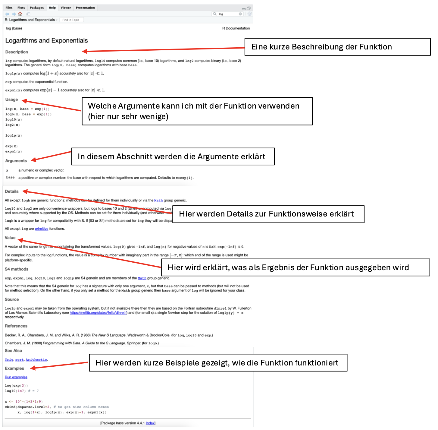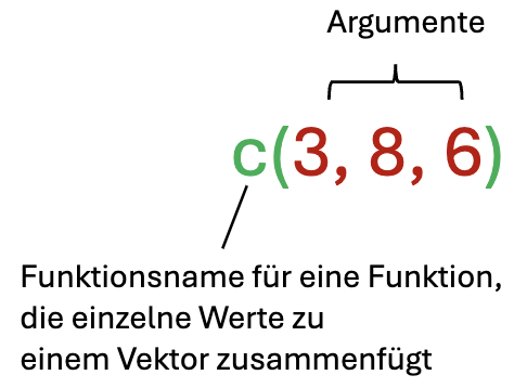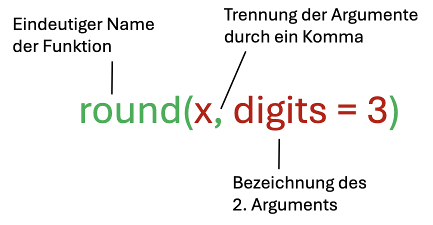 Wir haben bereits gesehen, was Funktionen und Argumente sind. Dabei haben wir mathematischen Funktionen wie exp() kennengelernt, sowie die Funktion round() oder die Funktion c() zur Erstellung von Vektoren.