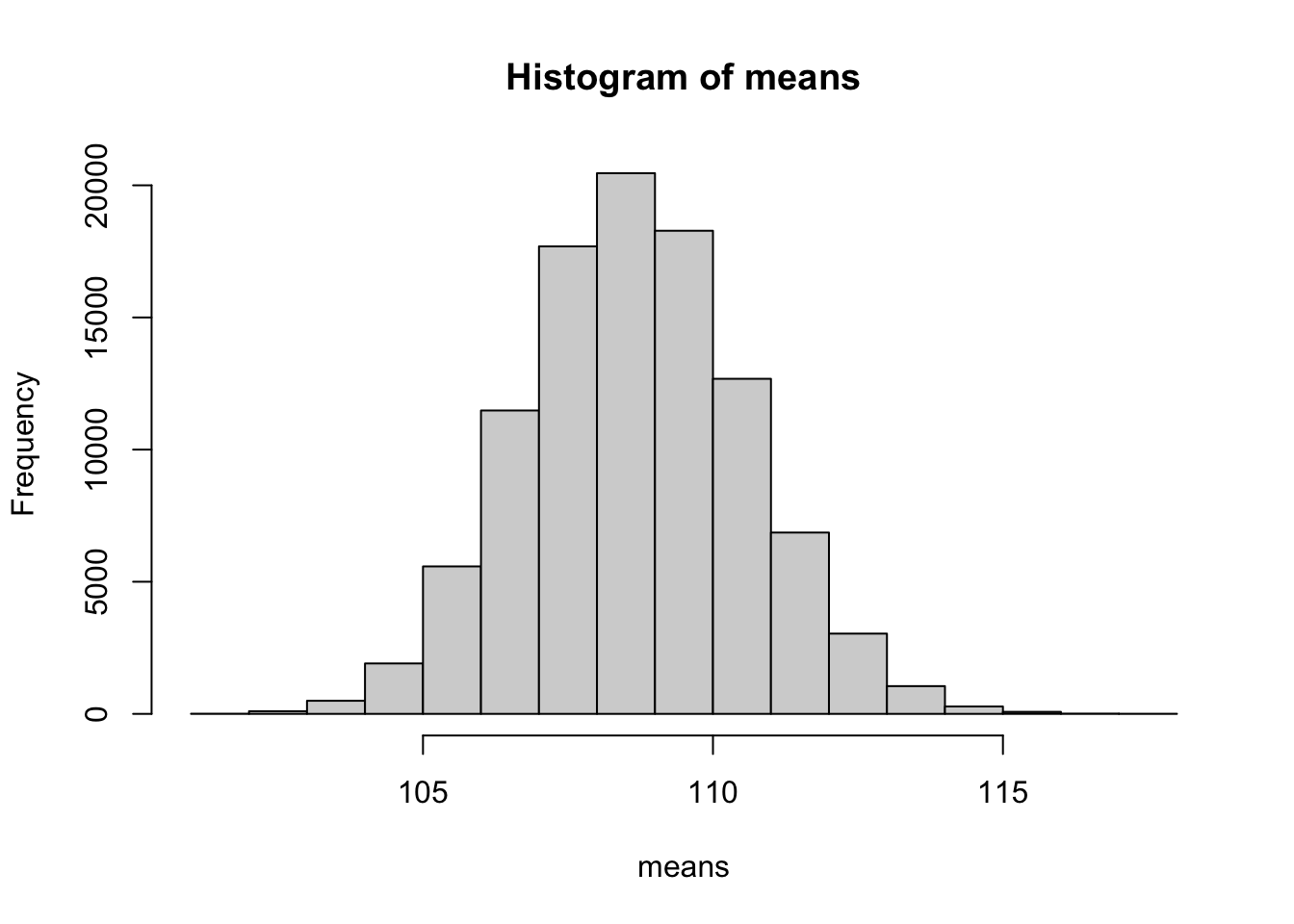 $ : num [1:100] 105.2 100.2 86.9 105.1 97.3 ...