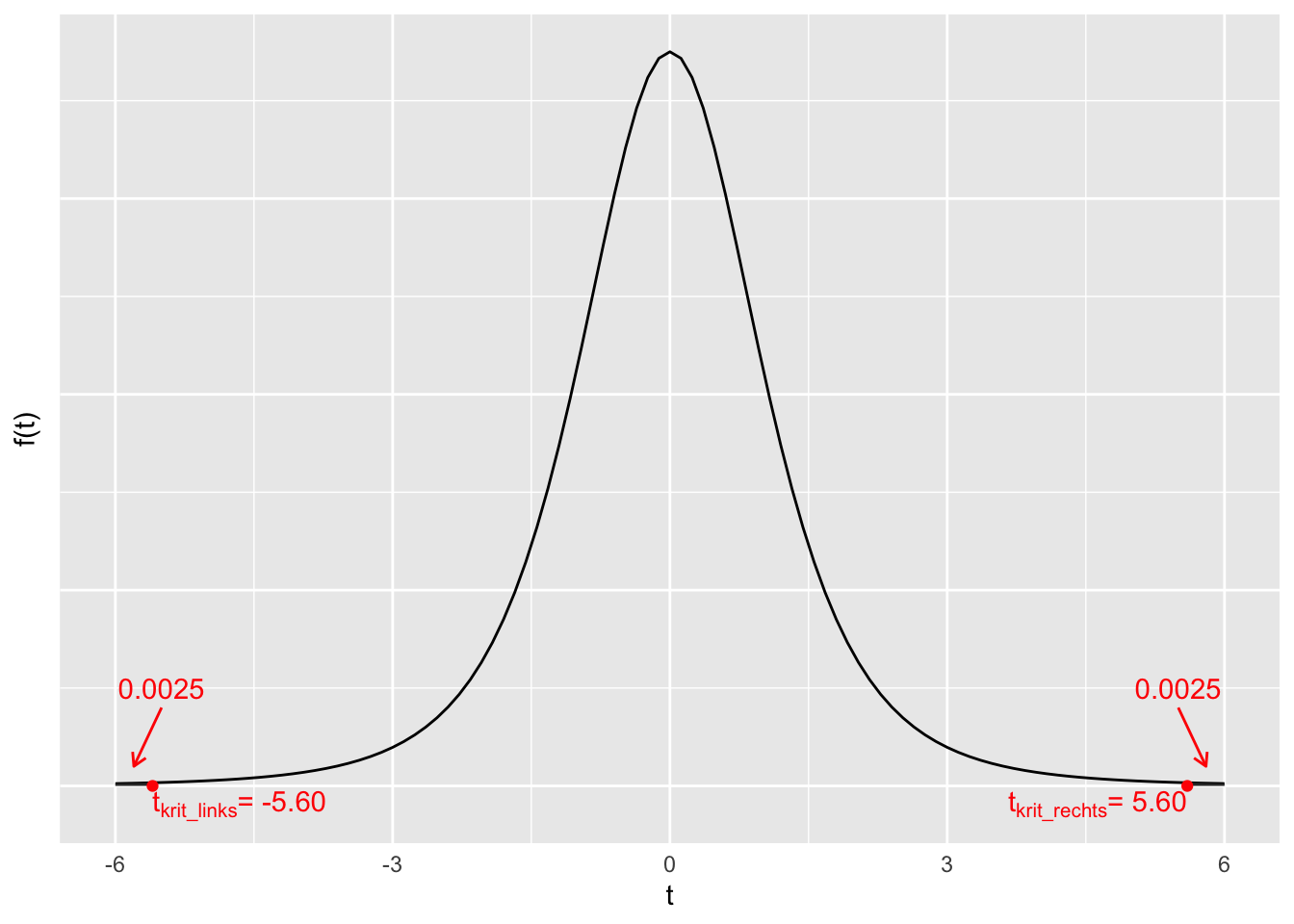 \(t_{krit\_ rechts}\ \)ist derjenige Wert, für den \(F\left( t_{krit\_ rechts} \right) = 1 - \frac{\alpha}{2} = 0.9975\) ist.