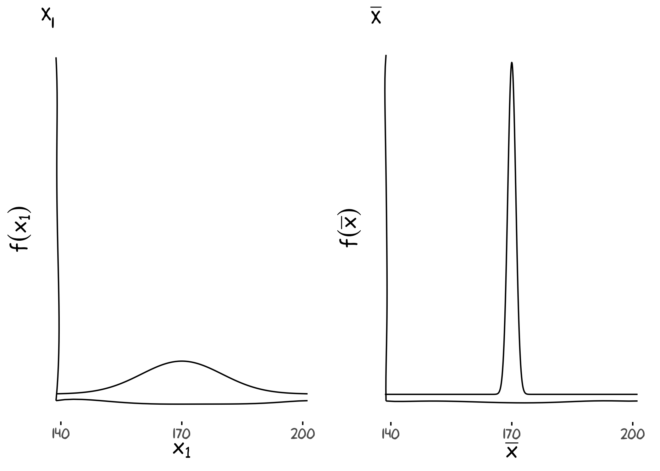 \[\bar{X}\ \sim\ N(170,\ 0.1)\]
